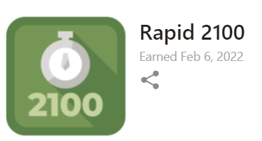 Mi idea era jugar partidas todas las mañanas pero después de un par de semanas lo dejé de hacer. Muy pronto llegué a lo mas alto que he llegado en partidas rápidas (2100) y dejé de jugar ese ritmo. Empecé a jugar mucho blitz y he estado en caída libre en ese ritmo (1900).