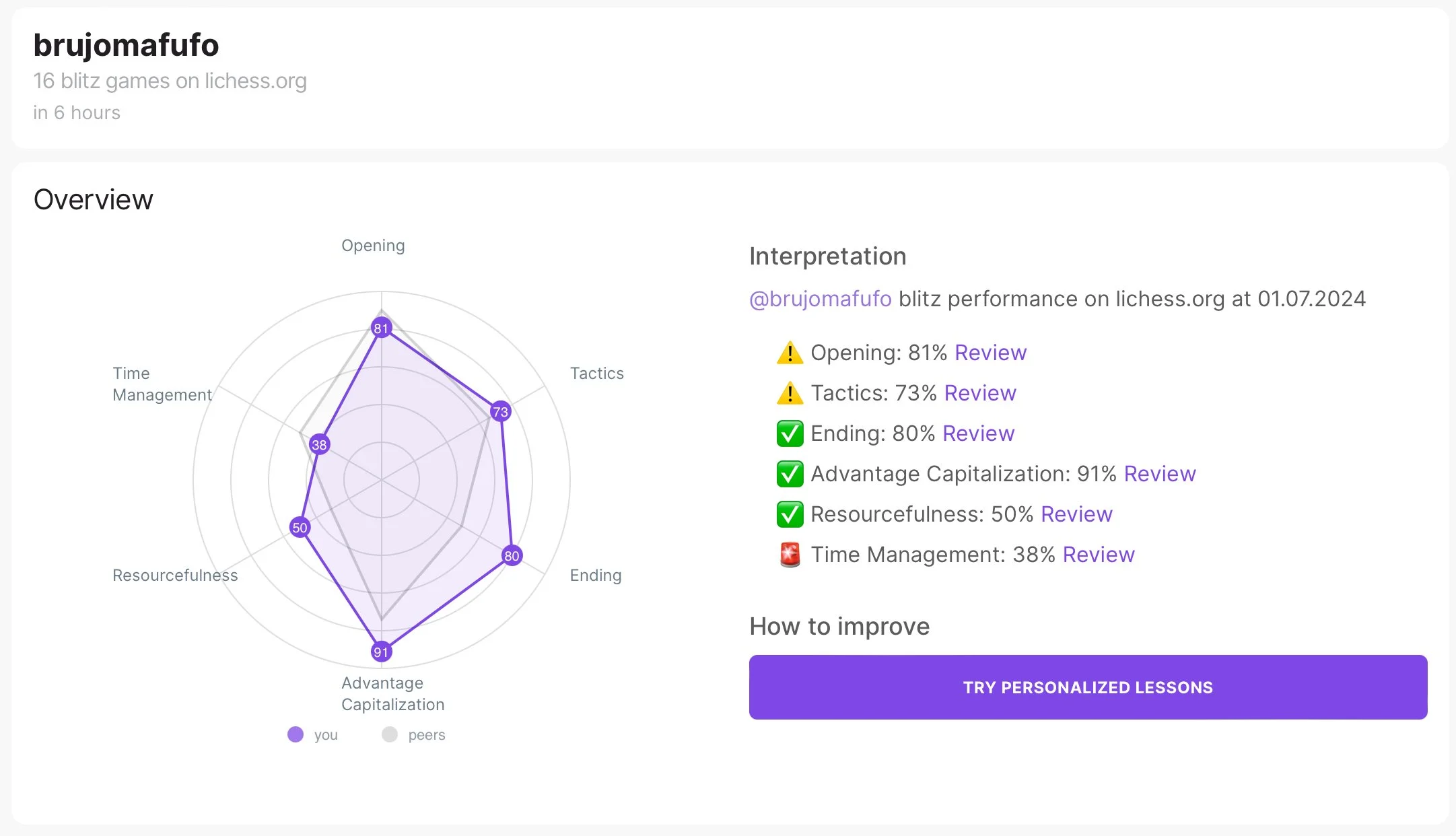 Sigo estudiando táctica en Chess Tempo todos los días.