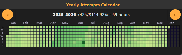 Estudiar en chessable todos los días - CASI CUMPLIDA. Racha de 334 días. Solo hubo un día en el año que no estudié en Chessable (el 31 de Enero).